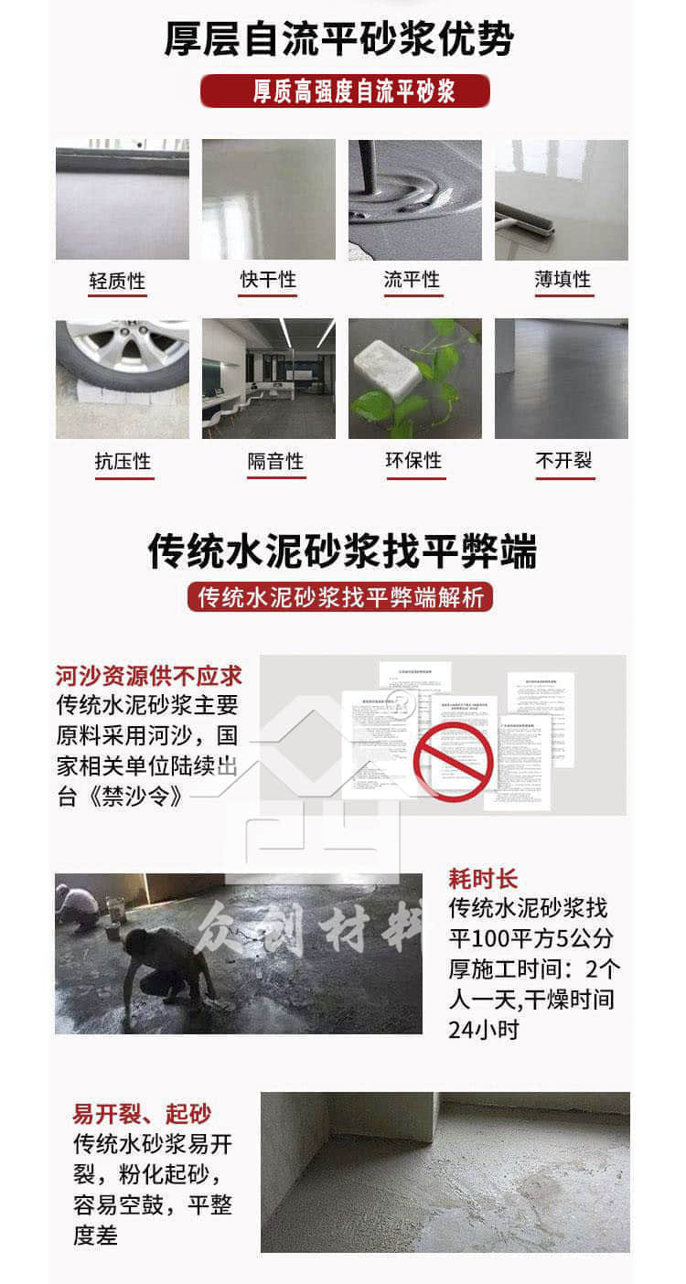 高強度自流平砂漿是一種新型的樓板保溫找平一體系統和地暖回填材料。它以水泥、高強水泥、石膏復合做為膠凝材料,添加微晶、級配骨料、填充料、可再分散乳膠粉、及各種高分子功能添加劑等混合而成,是一款新拌時流動性好,早期強度高,施工方便,平整度高,不易開裂的新型材料。該材料可同時做為樓板保溫層與面層。